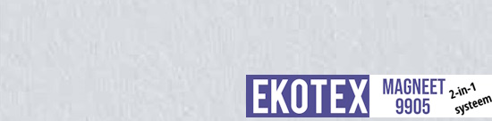 Ekotex 9905 staat voor een glasvliesproduct met een functionele meerwaarde. Deze glasvezelbehangen zijn het antwoord op de bijzondere eisen die worden gesteld aan behang, bijvoorbeeld in oude (woon) gebouwen, scholen of bedrijfsgebouwen. Deze wandbekleding is ook bijzonder geschikt in ziekenhuizen, kinderdagverblijven, kantoren of gewoon thuis! . Uw voordelen: Strakke en simpele verwerking met gegarandeerd succes. Eenvoudig met een afbreekmesje snijdbaar, ondanks de metaallaag. Magneet onderlaag en glasvlies in één waardoor u na het aanbrengen alleen nog muurverf hoeft op te brengen. Brandvertragend en waterdampdoorlatend. Hoe gaat u te werk: 1. Breng Ekotex Excellent Extra Sterk lijm op de wand aan. 2. Ekotex 9905 glasvlies magneetbehang zonder blazen aandrukken. 3. Na volledige droging 1e verflaag aanbrengen (evt. schoolbord of whiteboardverf). 4. Na volledige droging 1e verflaag kunt u de 2e verflaag aanbrengen (evt. schoolbord of whtiteboardverf). Uiteraard krijgt u een volledige handleiding bijgeleverd Ekotex 9905 is een magneetactief 2-in-1 glasvlies voor gladde, onzichtbare magneetwanden.